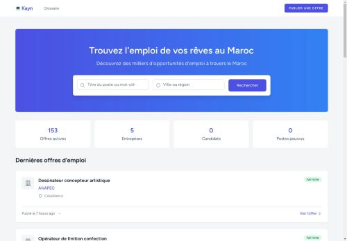 وصف الموقع: كاين هو موقع توظيف مغربي يربط بين الباحثين عن عمل والشركات الباحثة عن المواهب. نقدّم فرص عمل محدثة يوميًا في مختلف القطاعات، سواء كنت تبحث عن وظيفة بدوام كامل، جزئي، أو عن بُعد. سهولة التقديم، فرص حقيقية، ومستقبل مهني أقوى يبدأ من هنا!