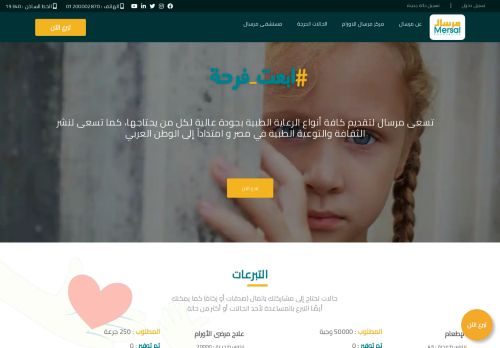 وصف الموقع: مرسال هي مؤسسة خيرية غير هادفة للربح تعمل في مجال الصحة، تسعى مرسال لتقديم كافة أنواع الرعاية الطبية بجودة عالية لكل من يحتاجها، كما تسعى لنشر الثقافة والتوعية الطبية في مصروامتدادًا إلى الوطن العربي. تسعى مؤسسة مرسال إلى إنشاء نظام تأمين صحي شامل يعمل بالتوازي مع النظام الحكومي القائم بهدف توفير كافة الخدمات الصحية بجودة عالية لكل من يحتاجها من غير القادرين بدون أي تفرقة. يتم ذلك من خلال شبكة من الأطباء والمستشفيات المتعاقدة مع مرسال.